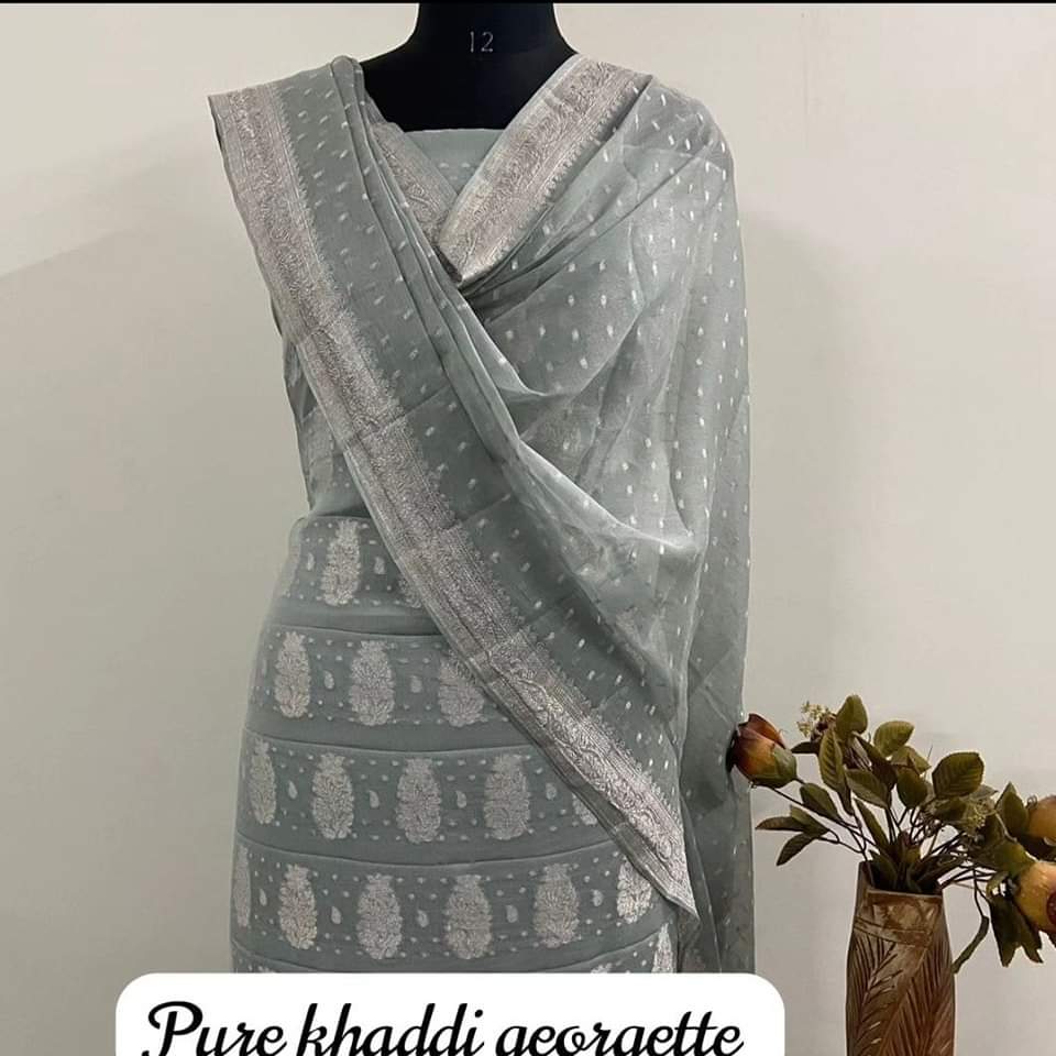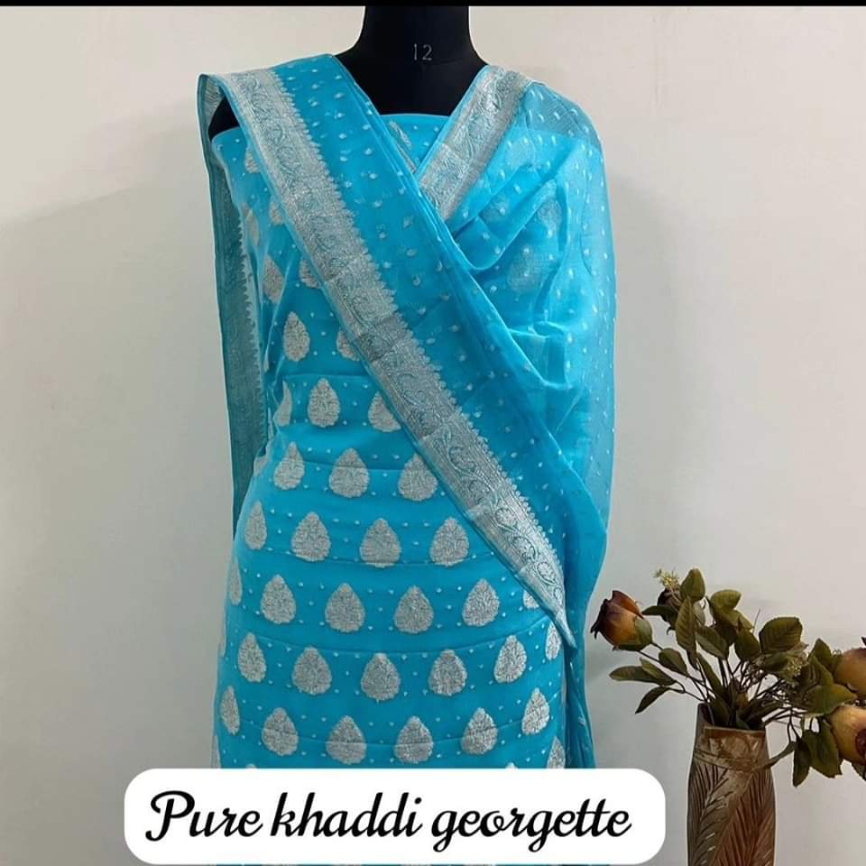 Khaddi Georgette Sarees with Antique Zari